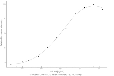 GMP grade: CellGenix® Recombinant Human IL-10 is produced following applicable GMP guidelines and allows for the safe use in accordance with USP Chapter <1043>, Ph. Eur. General Chapter 5.2.12 and ISO 20399:2022.