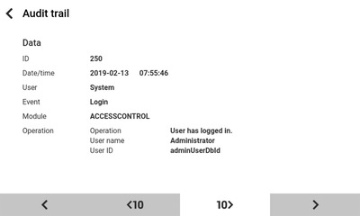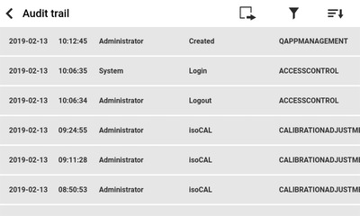 • It is possible to export as a PDF. The audit trail is a ring buffer with 150,000 entries and cannot be manipulated or deleted
