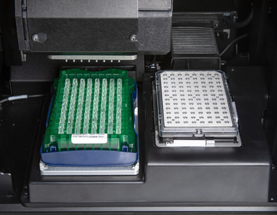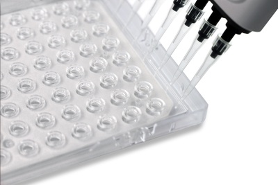 The Octet® AE evaporation cover minimizes sample evaporation from 96-well plates by maintaining a saturated vapor layer above the sample wells, thereby reducing the evaporation rate, maintaining > 90% of the sample volumes for up to 16 hours at 25°C. The Octet® AE