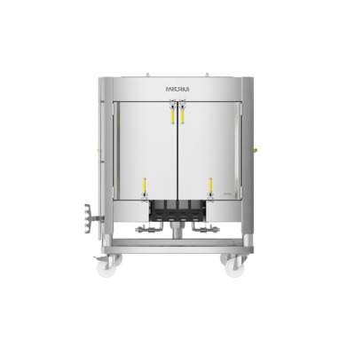 - The front doors allow easy installation of the mixing bag, and the front port gate facilitates installation of tubing lines and sensors, allowing for manipulations during filling, sampling, and draining.