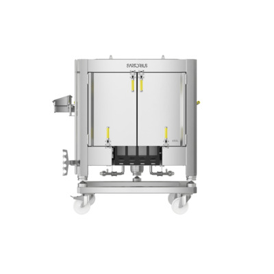 • The front doors allow easy installation of the mixing bag, and the front port gate facilitates installation of tubing lines and sensors, allowing for manipulations during filling, sampling, and draining.