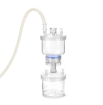 Type 16510 is complete with a receiver flask, and can be used with vacuum or low pressure (0.5 bar|7.3 psi is recommended for maximum throughput). Type 16511 is the same as 16510, but without a receiver flask. It is designed for use on a suction flask or a vacuum manifold (e.g. Combisart® systems). Both types can be sterilized by autoclaving (max. 121°C).