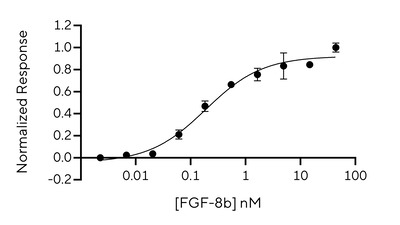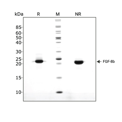 Recombinant human FGF-8b protein has been shown to play a major role during prenatal development, is widely expressed during embryogenesis and is a key player in epithelial-mesenchymal transitions and regulates organ formation in embryos. It is often used for the differentiation of induced pluripotent stem cells into neural cell types and brain organoid cultures.