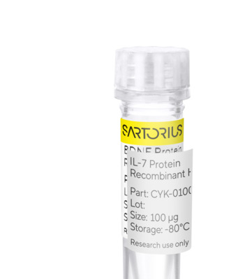 Interleukin-7 (IL-7) is a cytokine that promotes the differentiation of pluripotent hematopoietic stem cells (HSCs) into lymphoid progenitor cells and supports proliferation of various cells in the lymphoid lineage (B cells, T cells and NK cells). It is secreted mainly by stromal cells in the bone marrow and thymus and is used in the ex vivo expansion of genetically modified T cells, such as CAR T cells, and differentiation of induced pluripotent stem cells (iPSCs) into T cells. It is in addition used to differentiate cord blood derived hematopoietic stem cells (HSCs/CD34+) into NK cells.