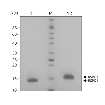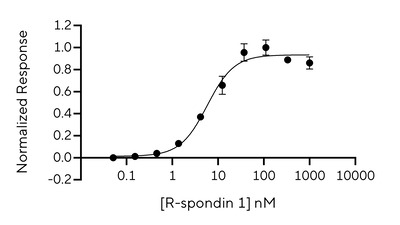 Recombinant human R-spondin 1 protein is part of the wnt family of modulators and is needed for hematopoietic stem cell specification and cancer cell migration and survival. It is also used for increasing Wnt signalling in many organoid culture systems including intestinal and tumor organoid culture along as well as iPSC's.